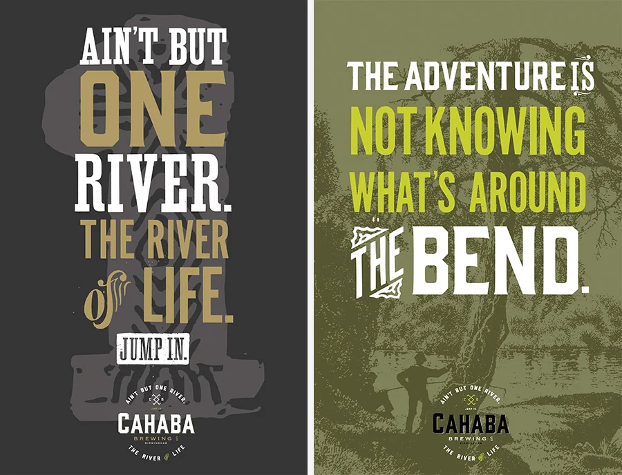 Brand and packaging design for craft brewery, Cahaba Brewing – Birmingham, Alabama.
